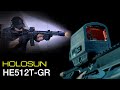 Holosun HE512T-GR — коллиматорный прицел закрытого типа на солнечных батареях для использования с винтовками или карабинами. Это одна из наиболее "продвинутых" моделей компании Holosun, которая относится к линейке коллиматоров Elite. Коллиматор выполнен из титана с закрытой конструкцией, газовым наполнением и защитой по стандарту IPX8. Крепится на планку Вивер/Пикатинни. Одним из важных удобств следует отметить высокое поле зрения при сравнительно компактных габаритах. Этому способствуют тонкие, но прочные стенки из титанового сплава.