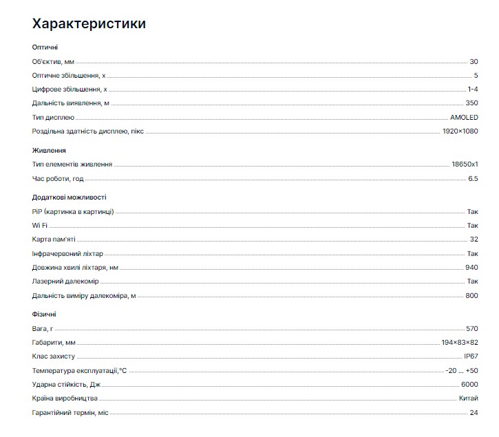 | Діаметр об'єктива (розмір лінзи), мм. | 30 |