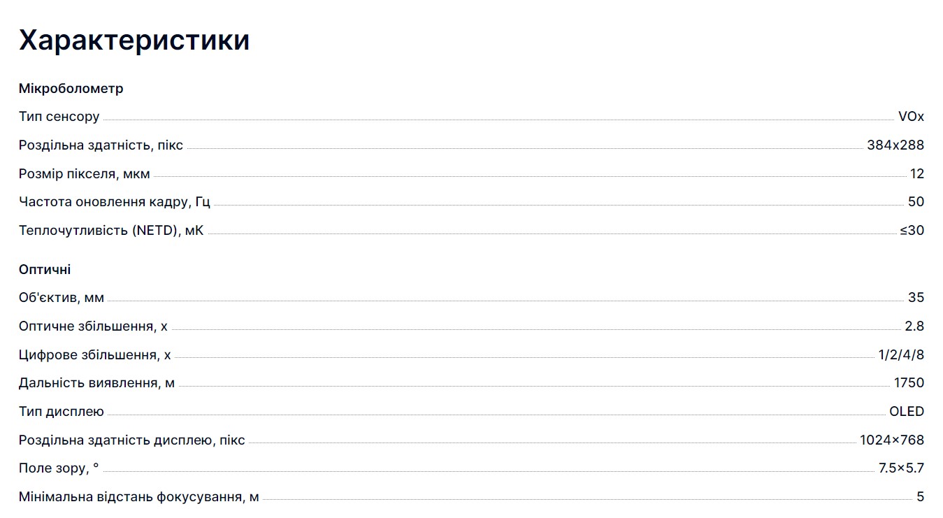 - велика дальність виявлення об'єкта – 1750м